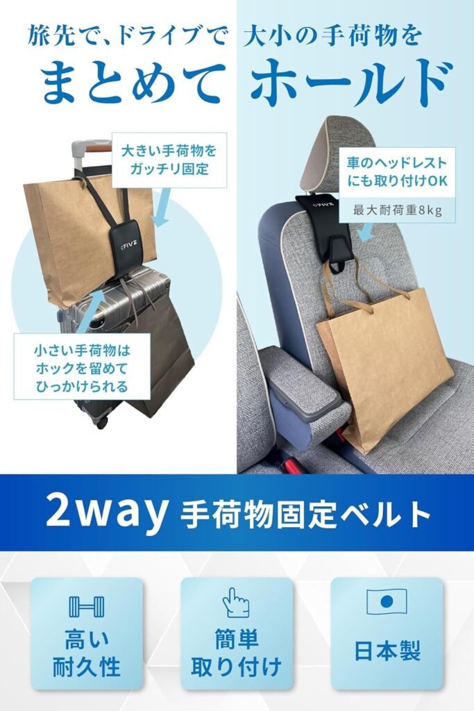 【新発売】移動をもっと快適に。スーツケース&車用《2WAY手荷物固定ベルト》誕生!